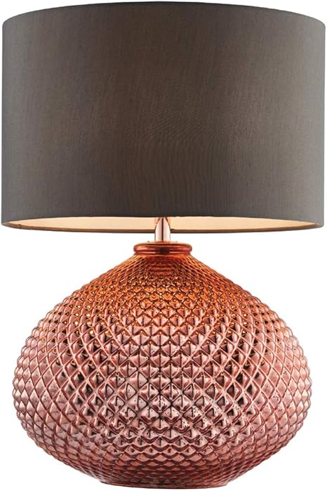 Tischleuchte 60 W E27 445 Mm Hoch Modern Strukturiert Kupfer Quecksilber Glassockel Und Grauer Seidenschirm Rund Fur Schlafzimmer Nachttisch Sideboard Buro Schreibtisch Lesefunktion Beleuchtung Led Amazon De Beleuchtung